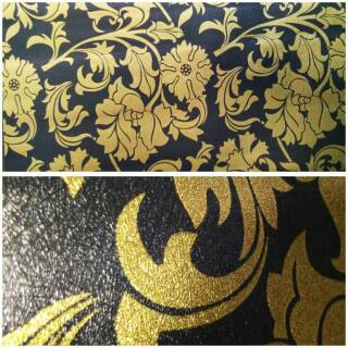 Termurah grosir wallpaper sticker dinding batik hitam gold elegan.